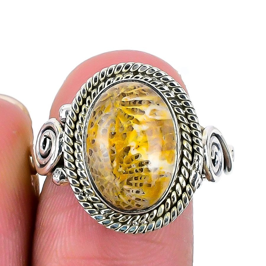 Fossil Coral Gemstone 925 Solid Silver Ethnic Statement Sister Elegant Ring US 8
