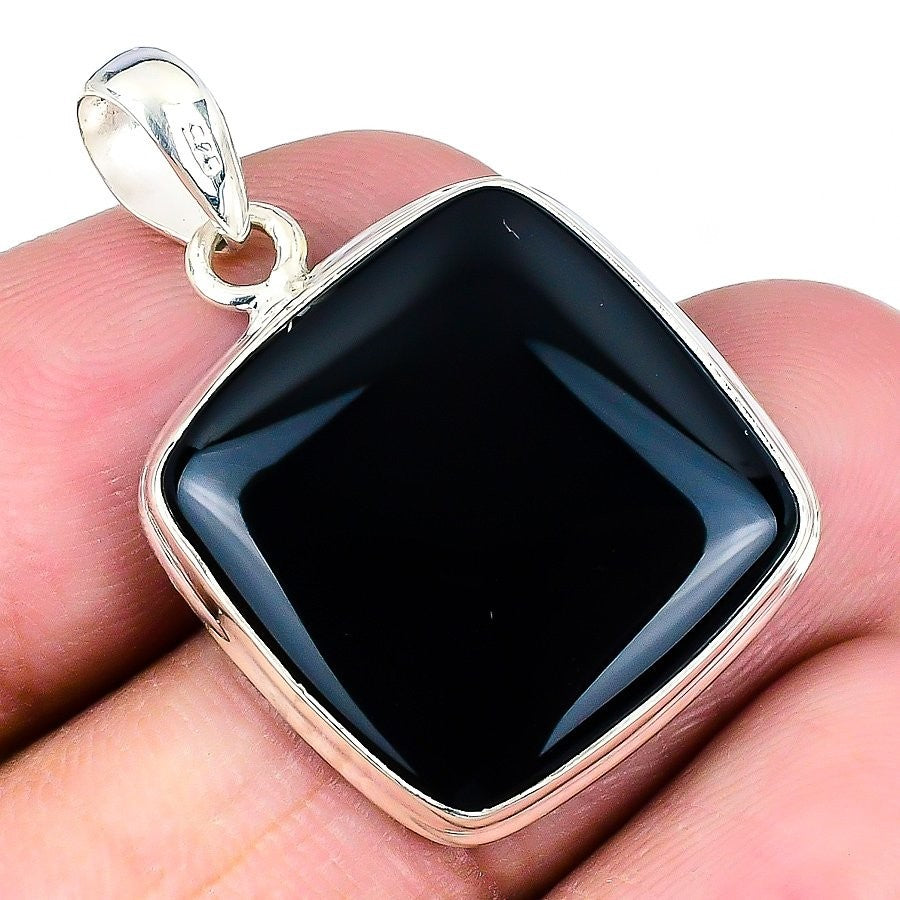 Natural Black Onyx Solid Sterling Silver Wedding Anniversary New Pendant Jewelry