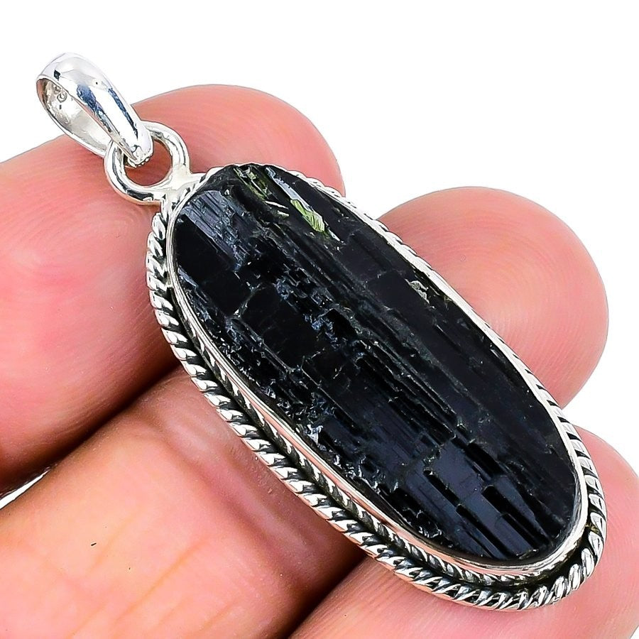 Black Tourmaline Stone 925Ā SolidĀ Silver Ethnic Daughters Day New Pendant Jewelry
