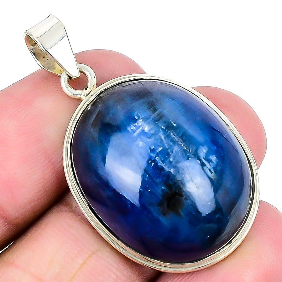 Blue Kyanite Gemstone 925Ā SolidĀ Silver Throat Chakra Art Deco Pendant Jewelry