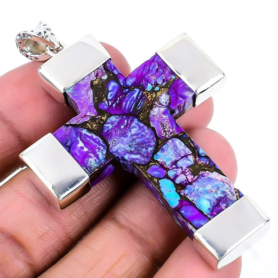 Copper Purple Turquoise Stone Solid Silver December Birth Mother Ethnic Pendant