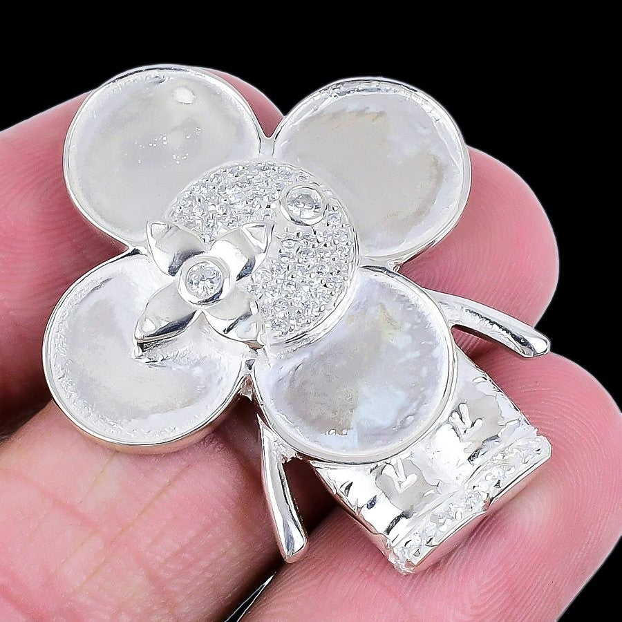White Topaz Stone Boho Crown Chakra Sister Birthday Wedding Pendant Solid Silver