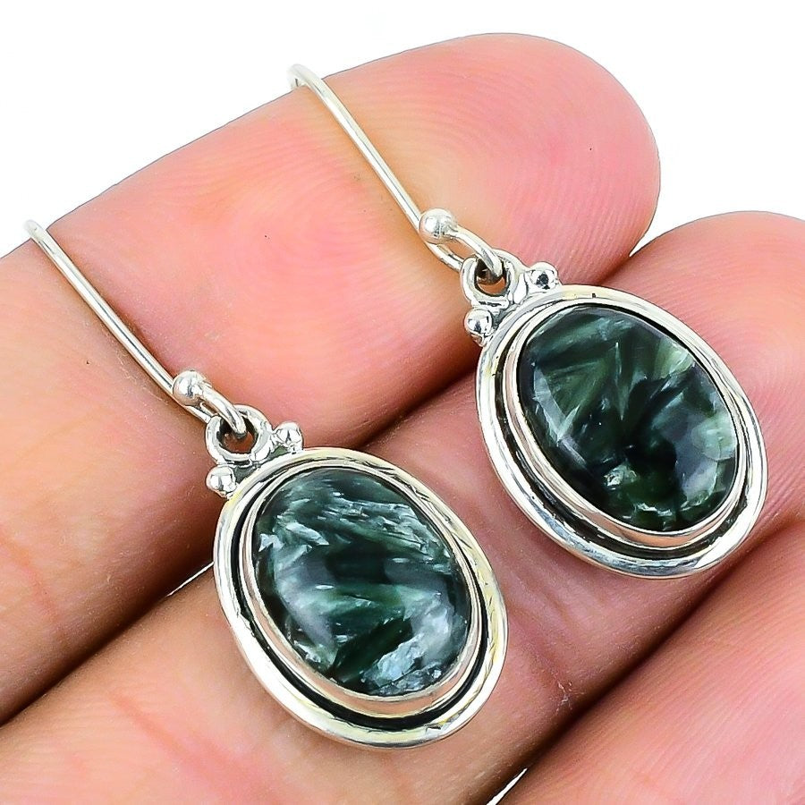 Natural Seraphinite 925Ā SolidĀ Silver Boho Dangle Drop Wedding Earrings Jewelry