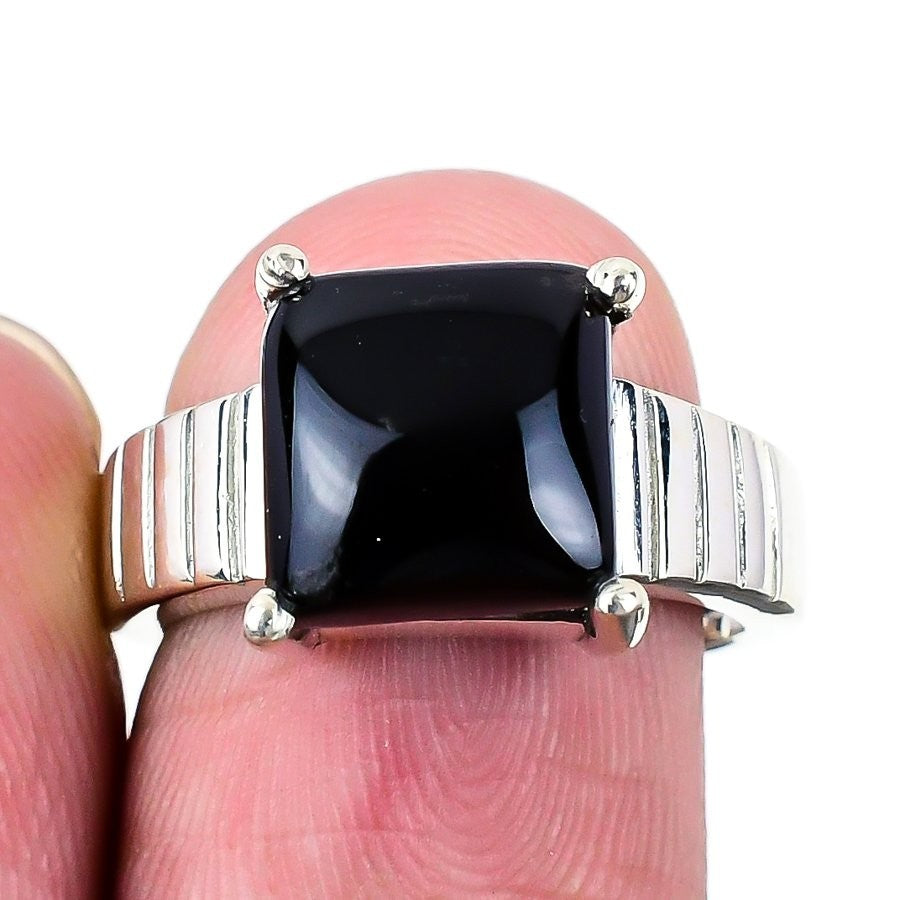 Natural Black Onyx Handcrafted Statement Birthday Ring 925 Sterling Silver US 7
