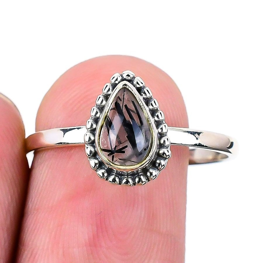 Natural Black Rutile Solid Silver Engagement Statement Daughters Day Ring US 10