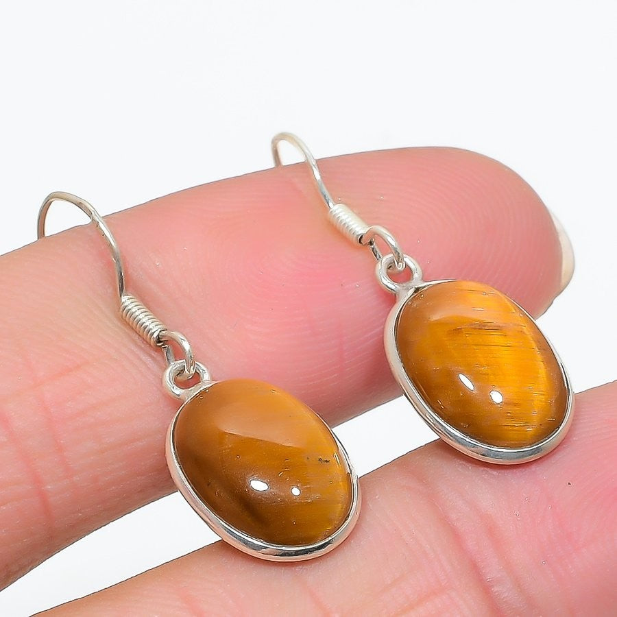 Daughters Day Deal Natural Tiger Eye 925Ā SolidĀ Silver Hook Drop Sister Earrings