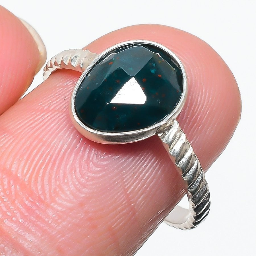 Bloodstone Gemstone Sterling Silver Cluster Engagement Wedding New Ring Size 8.5