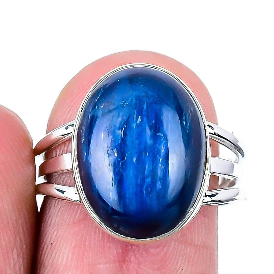 Throat Chakra Blue Kyanite Gemstone Sister Statement Ring 925Ā SolidĀ Silver US 8