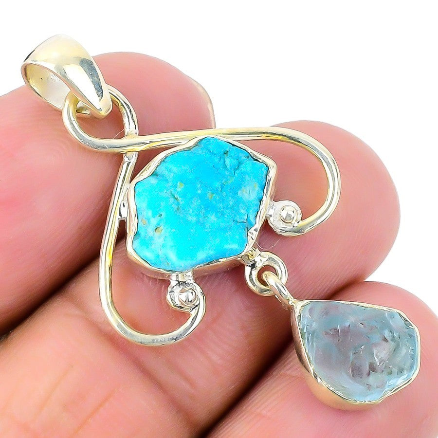 Natural Aquamarine Sister Elegant Handmade New Pendant Jewelry 925Ā SolidĀ Silver