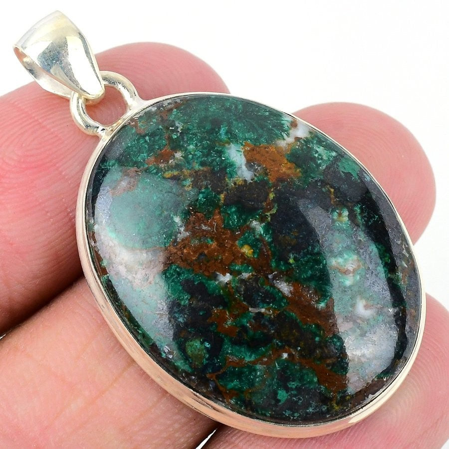 Natural Azurite Malachite Solid Sterling Silver Daughter Gift Pendant Jewelry