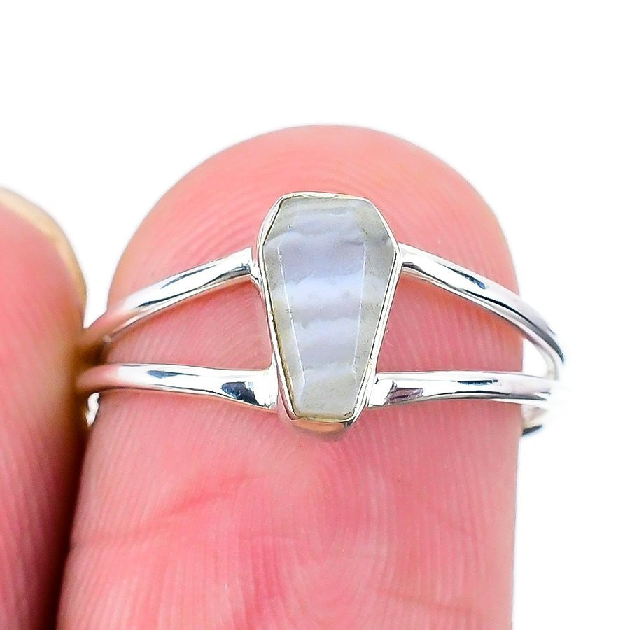 Blue Lace Agate Gemstone 925 Silver Daughters Day Statement Ring Jewelry US 7