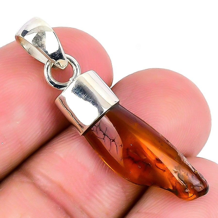 Sacral Chakra Baltic Amber Gemstone 925 Silver Anniversary Mother Ethnic Pendant
