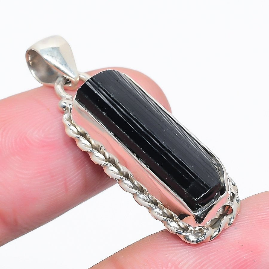 Black Kyanite Gemstone 925Ā SolidĀ Silver Best Daughters Gift Artisan Boho Pendant