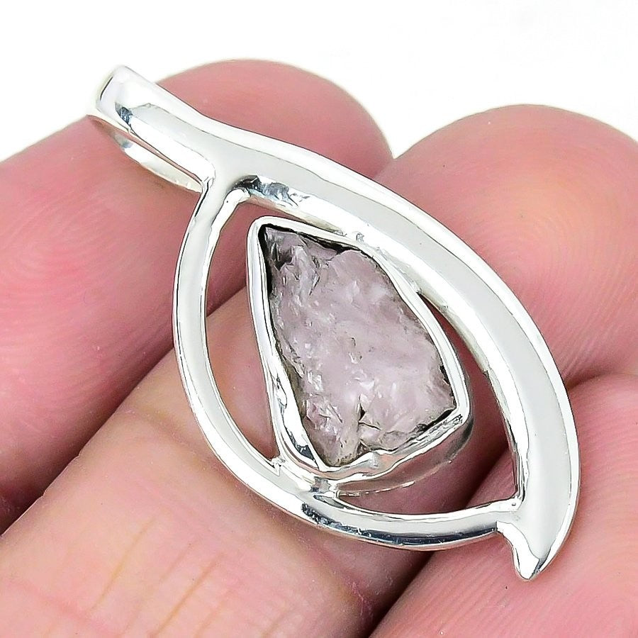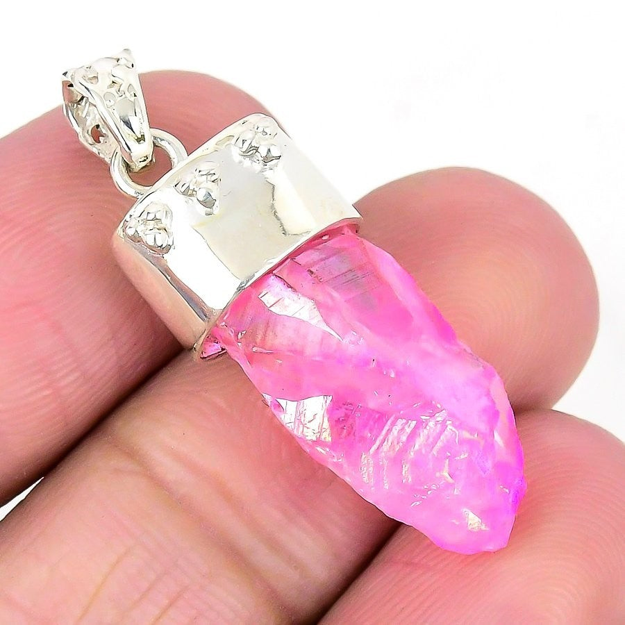 Pink Titanium Aura Stone Solid Silver Daughters Day Mother Wedding Boho Pendant