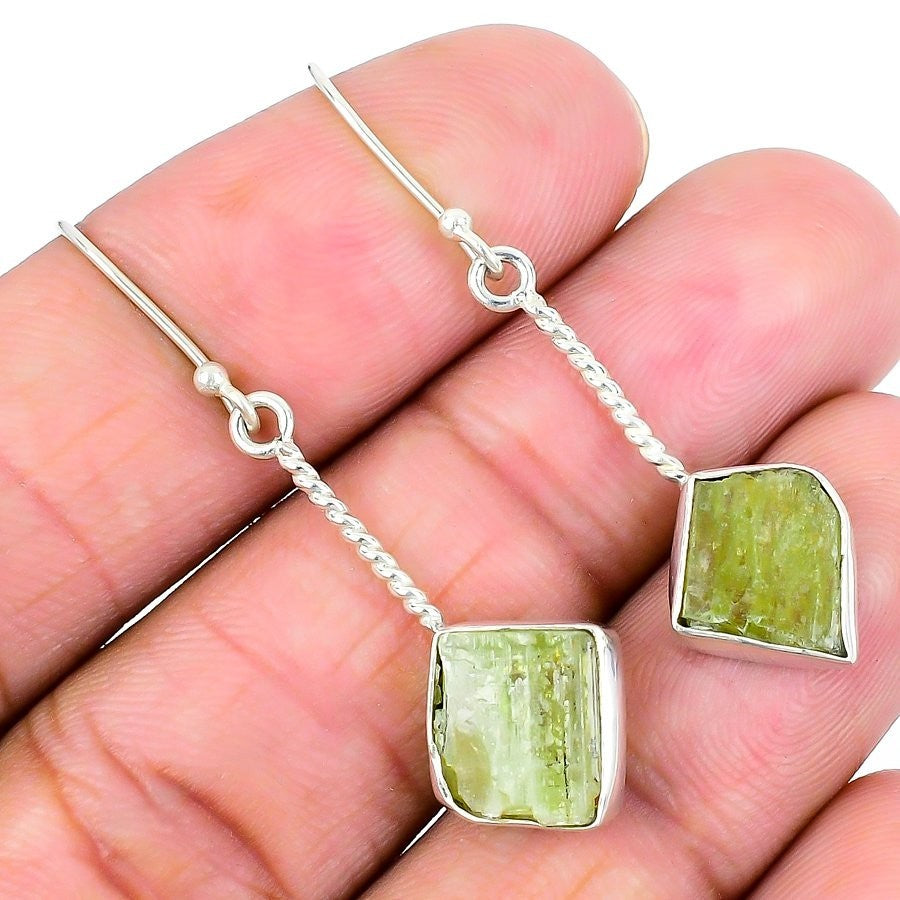 Green Kyanite Gemstone 925 Sterling Silver Ethnic Daughter Boho Dangle Earrings