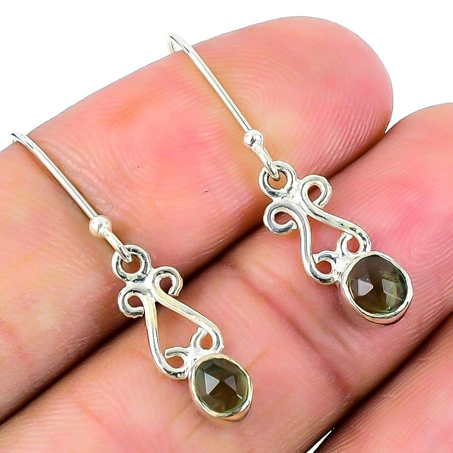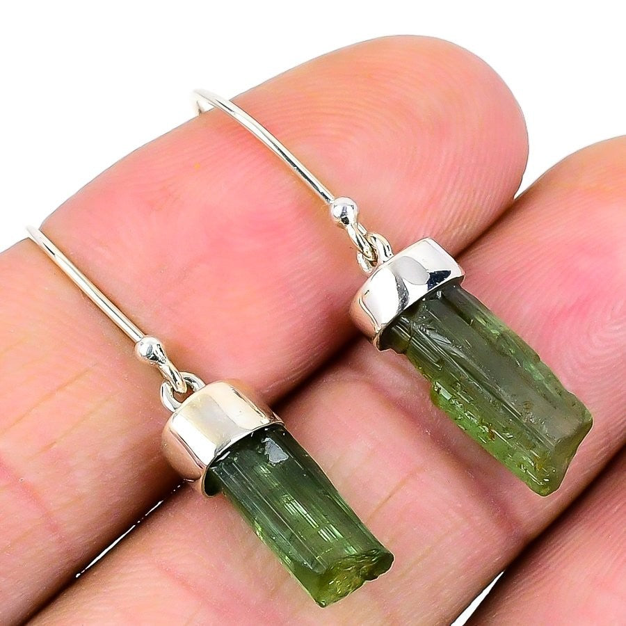 Natural Green Tourmaline Dangling Unique Hook Earrings Jewelry 925Ā SolidĀ Silver