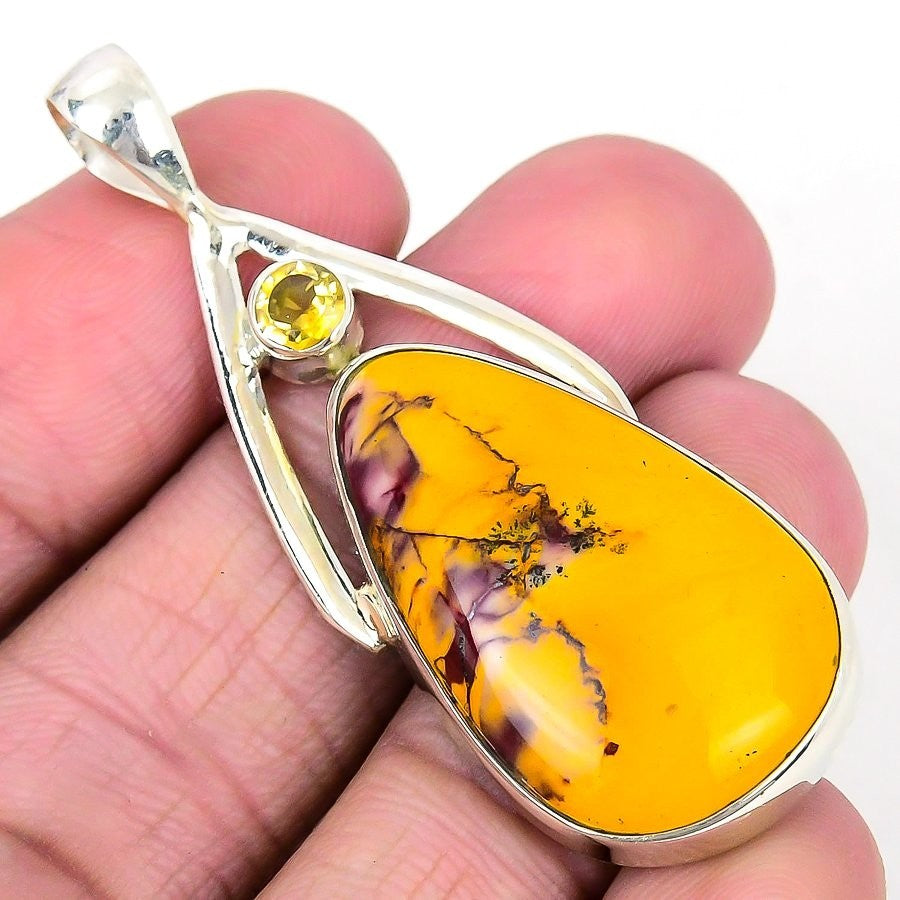 Daughters Day Sale Mookaite Gemstone Solid Silver Wife Trendy Wedding Pendant