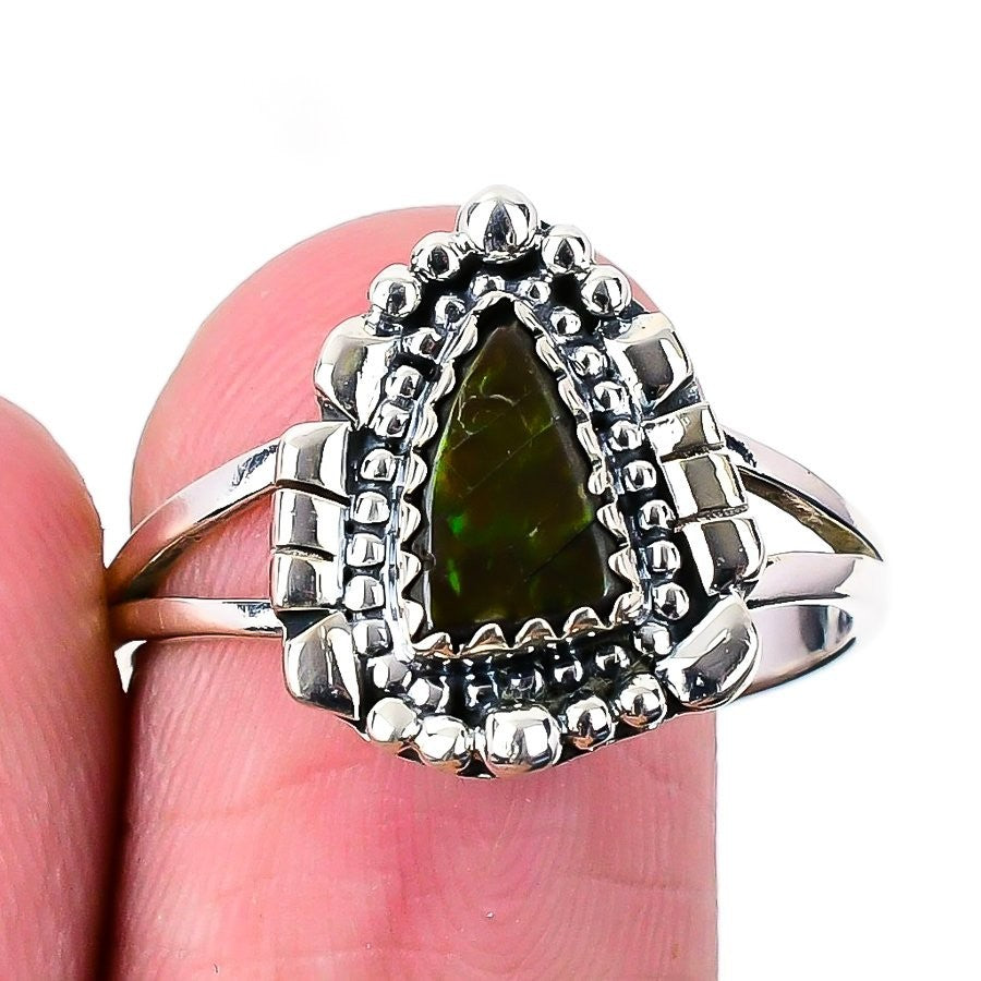 Ammolite Gemstone Solid Silver Sister Statement Handcrafted Ring Jewelry Size 10