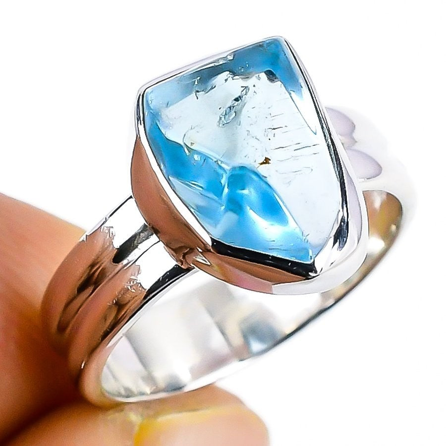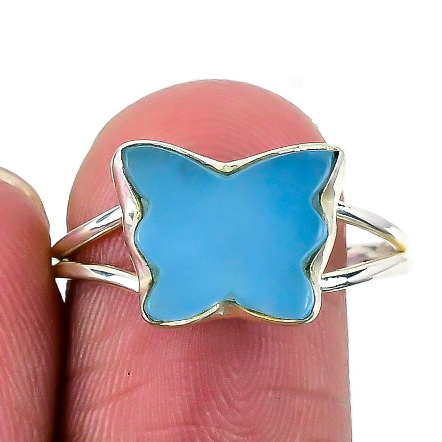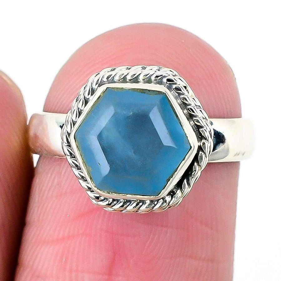 Throat Chakra Aqua Chalcedony Gemstone 925Ā SolidĀ Silver Statement Ring Size 8.5