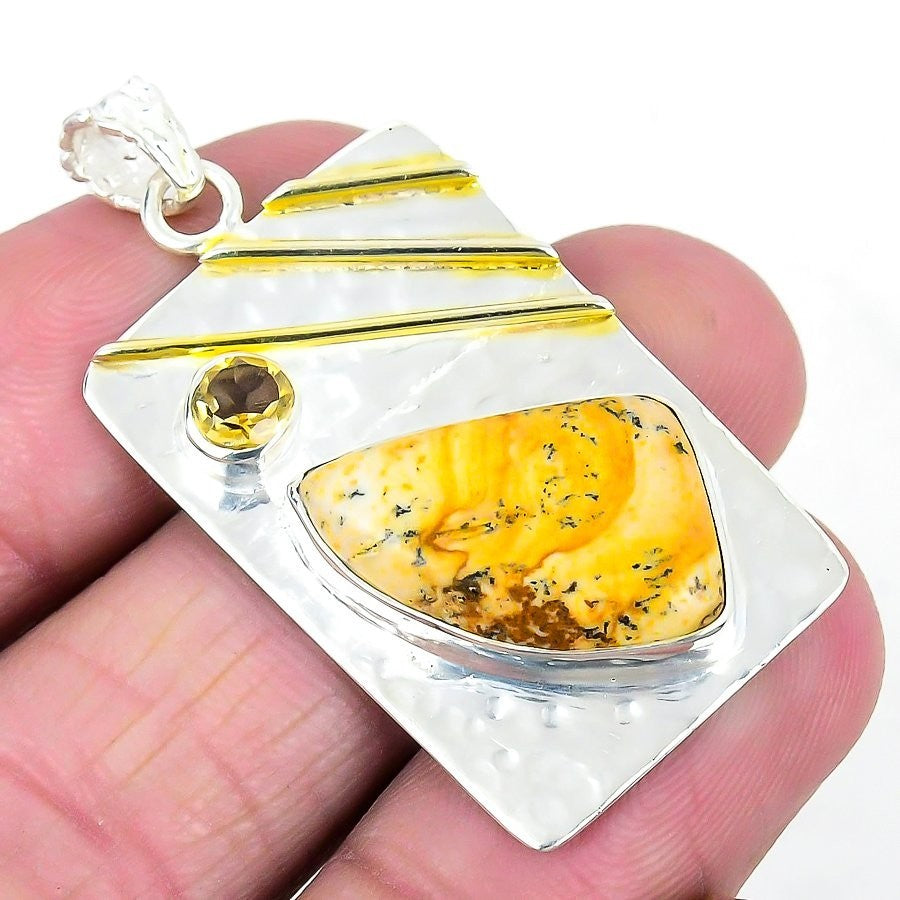Picture Jasper Stone Channel Set Engagement Wife Ethnic Pendant Sterling Silver