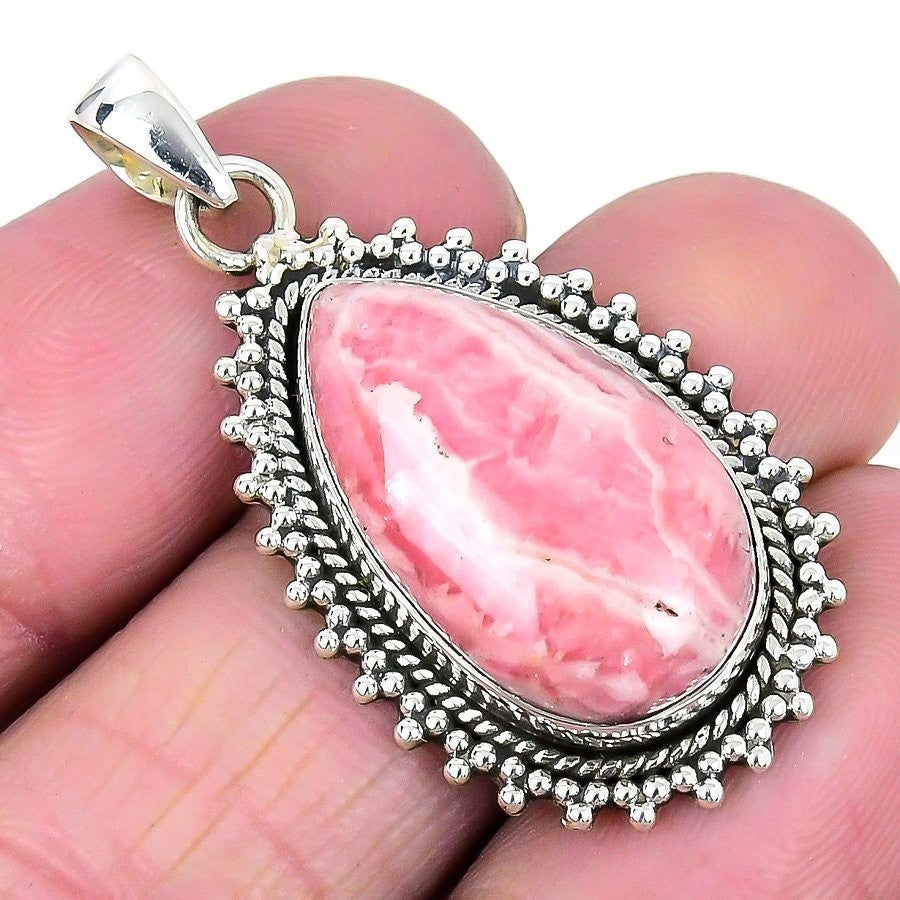 Rhodochrosite Stone Solid Sterling Silver Wife Wedding Heart Chakra Boho Pendant