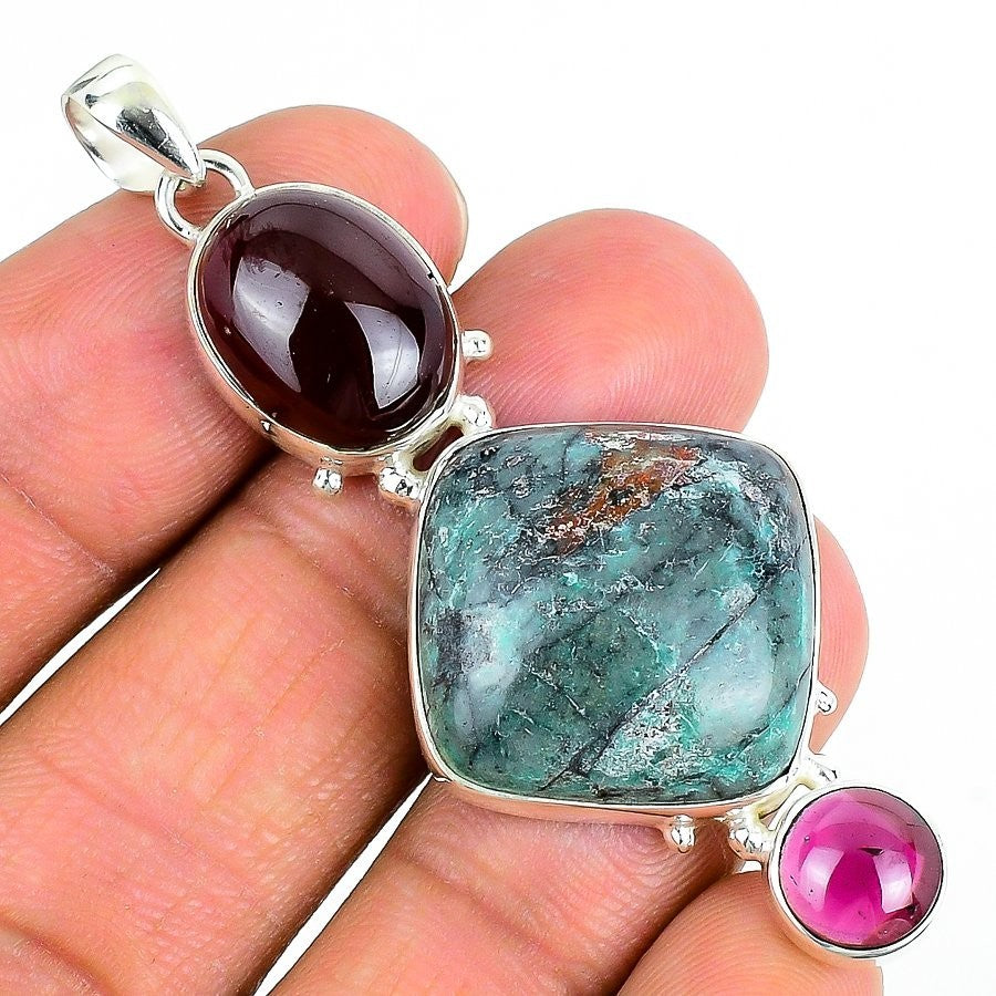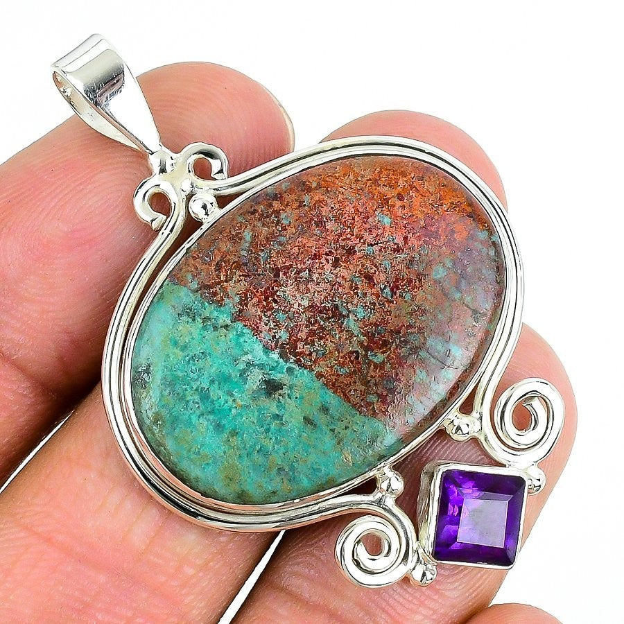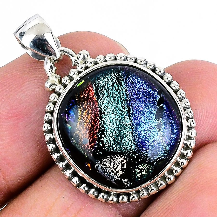 Mexican Dico Glass Gemstone Solid Silver Bezel Anniversary Wife Pendant Jewelry