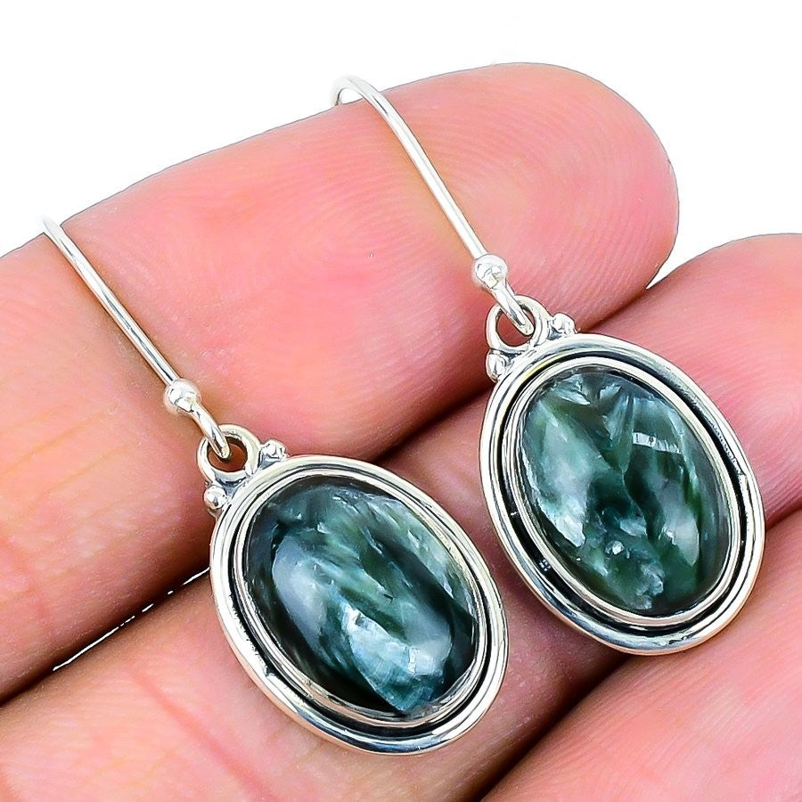 Seraphinite Gemstone Solid Silver Daughters Day Drop Handmade Earrings Jewelry