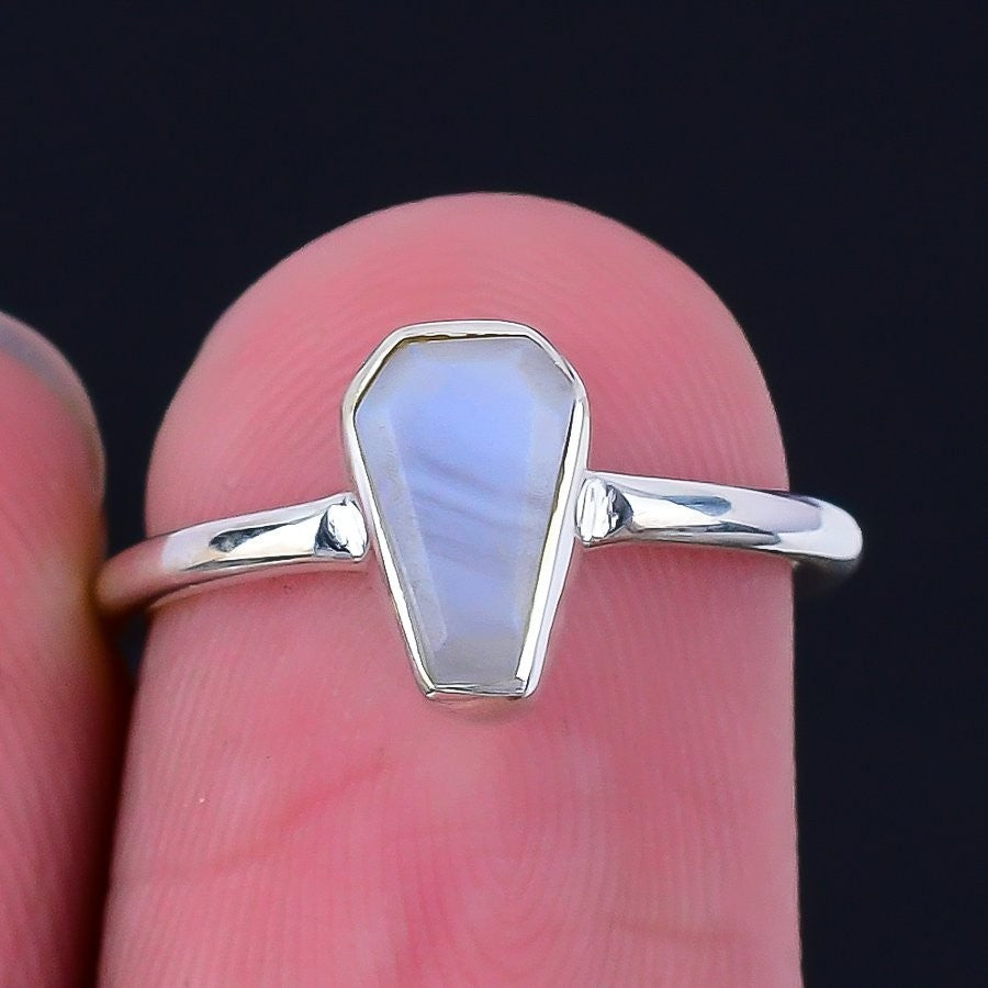 Natural Blue Lace Agate Solid Sterling Silver Boho Cluster Ring Jewelry Size 6
