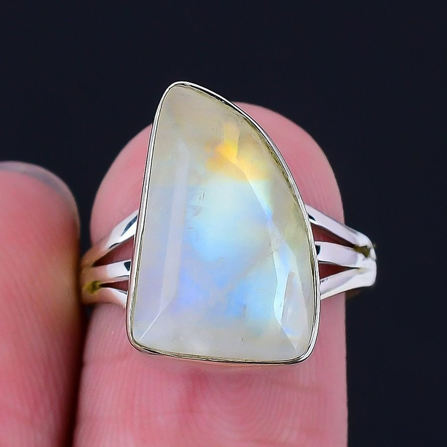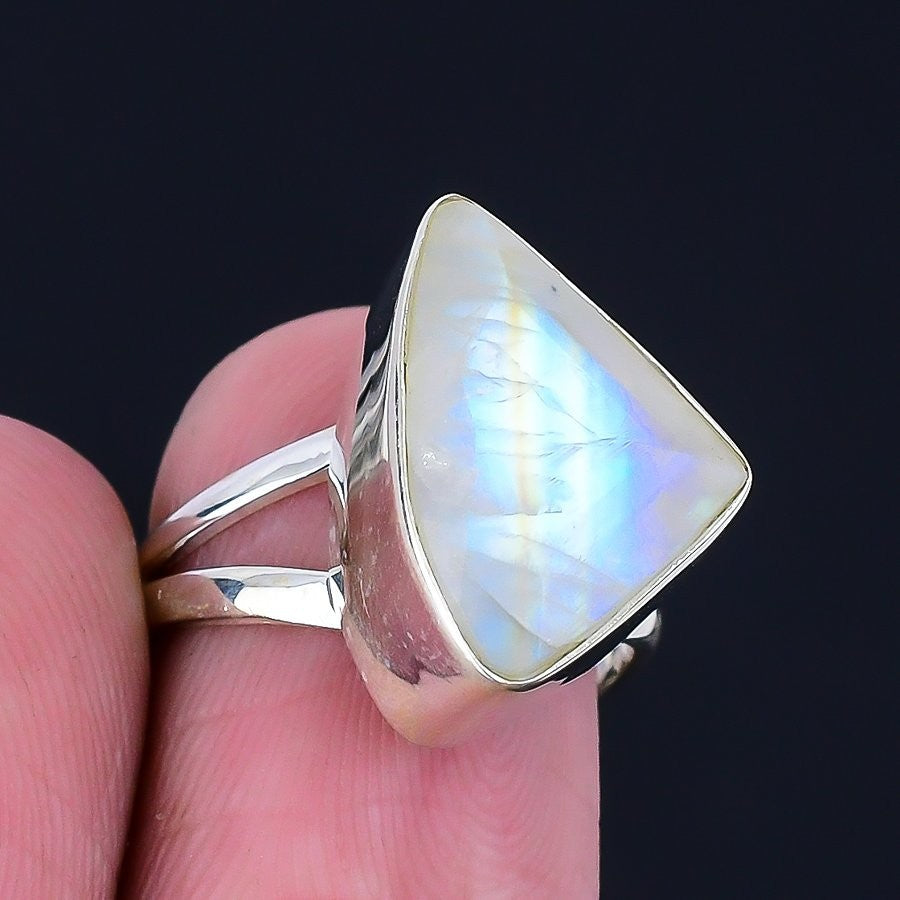 Rainbow Moonstone Stone Solid Sterling Silver Boho Cluster Ring Jewelry Size 7