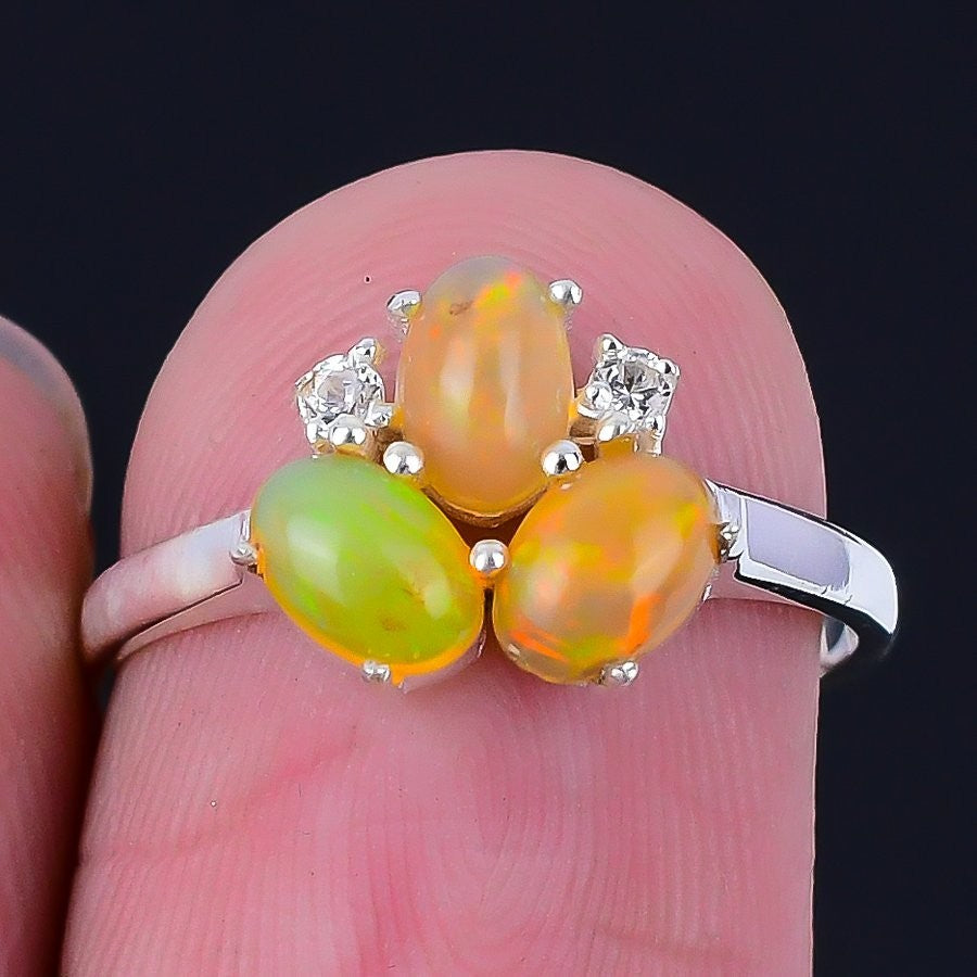 Ethiopian Opal Gemstone Cluster Wife Ring Jewelry Size 6 Solid Sterling Silver