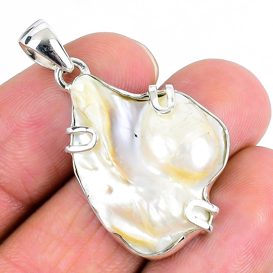 Natural Blister Pearl 925 Sterling Silver Art Deco Engagement Pendant Jewelry