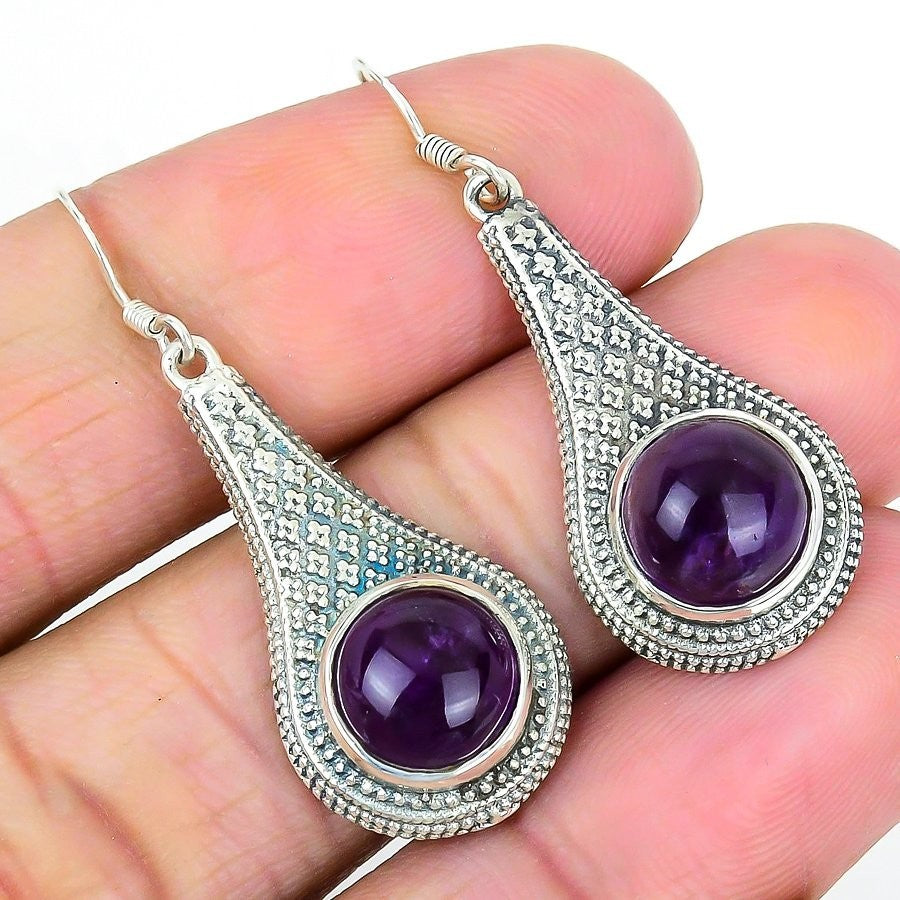 Sage Amethyst Stone 925 Silver Anniversary Art Deco Drop Wife Earrings Jewelry