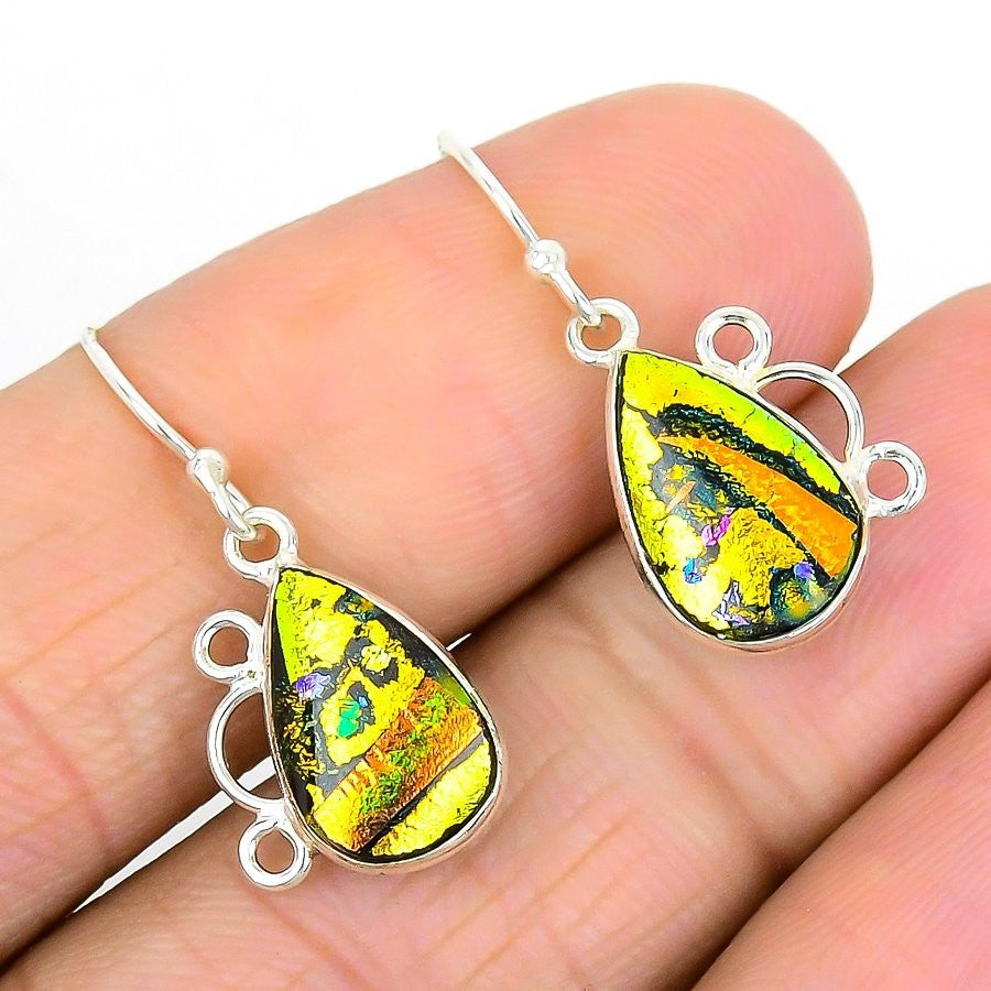 Mexican Dico Glass Stone Hook Artisan Dangling Handcrafted Earrings 925 Silver