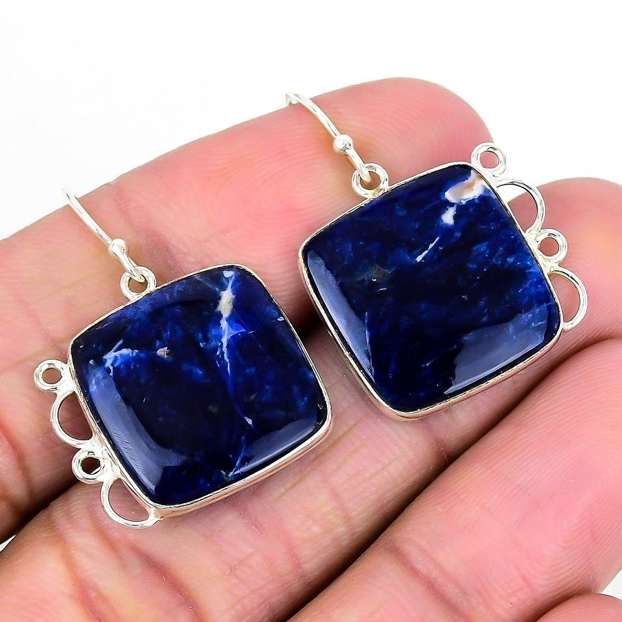 Sodalite Stone Trendy Drop Engagement Boho Wedding Earrings Jewelry Solid Silver