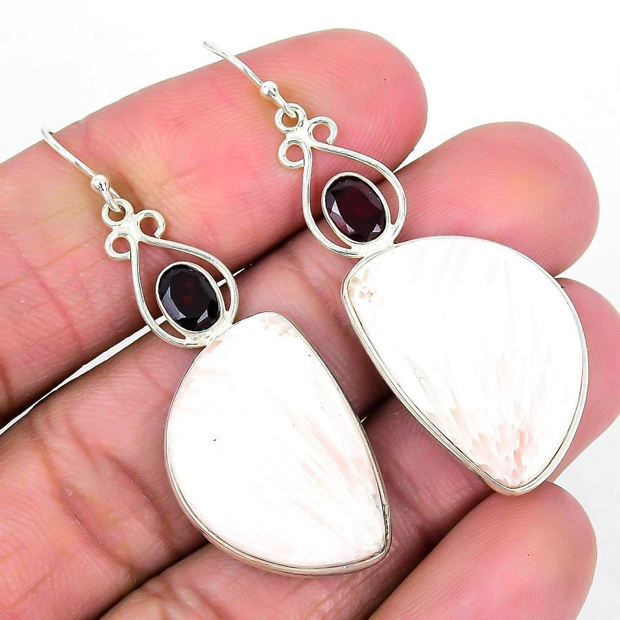 Natural Orange Scolecite 925 Sterling Silver Boho Dangle Drop Sister Earrings