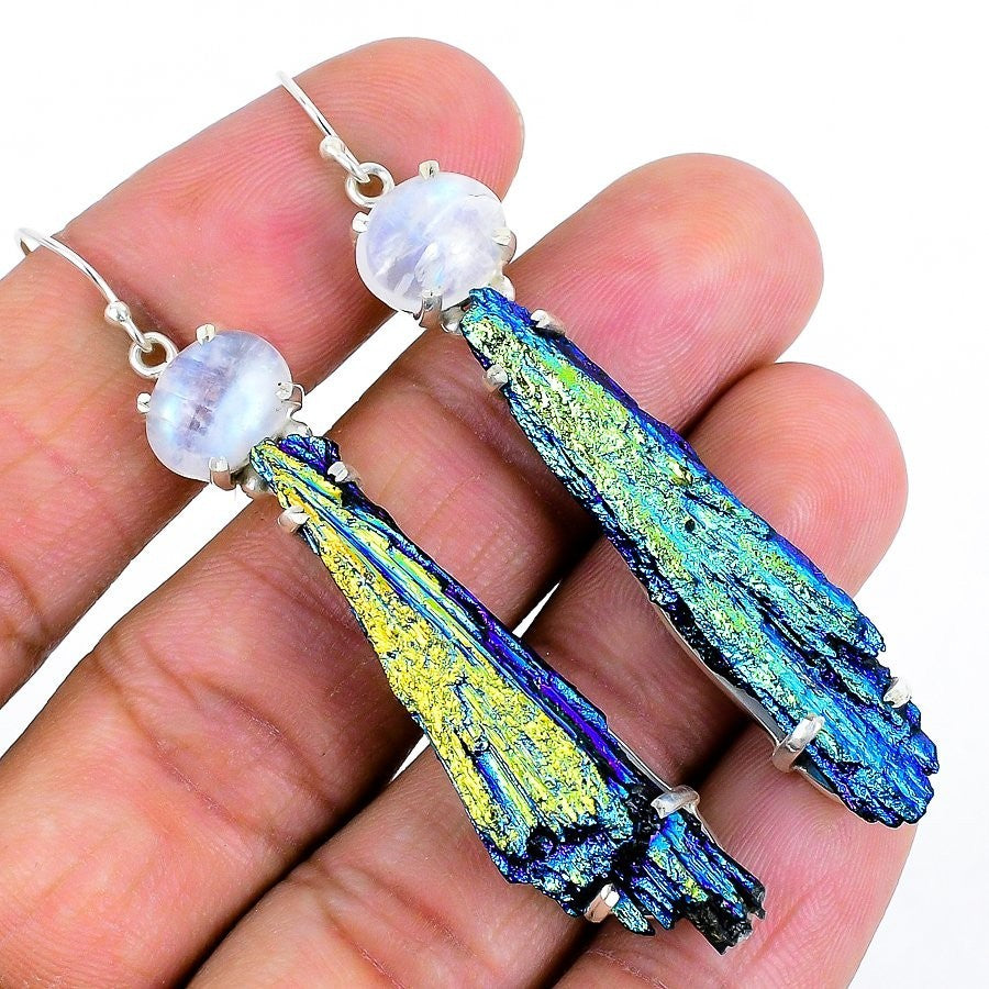 Natural Titanium Kyanite 925 Silver Wife Anniversary Drop Dangle Trendy Earrings