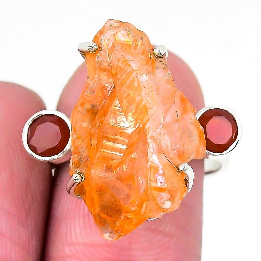 Natural Orange Titanium Aura crystal Solid Silver Cluster Ring Jewelry Size 8