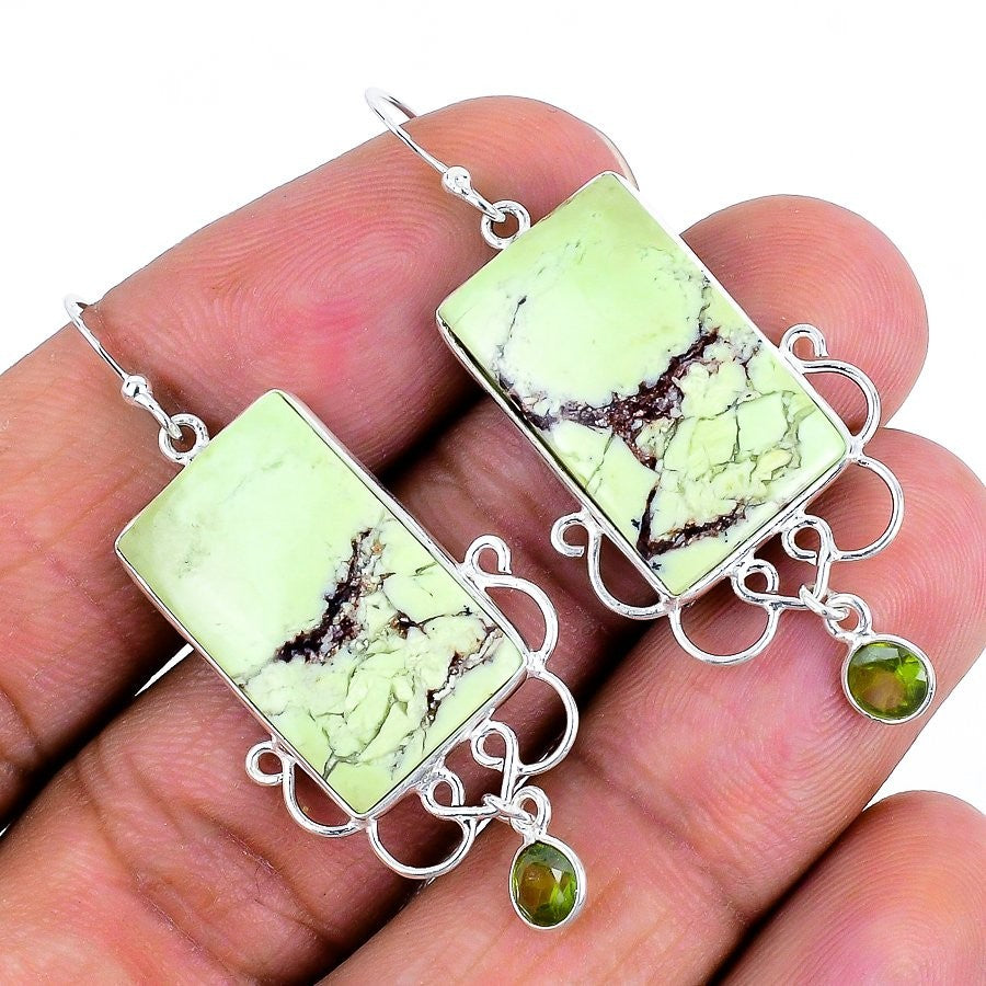 Boulder Chrysoprase Stone 925Ā SolidĀ Silver Art Deco Mother Drop Earrings Jewelry
