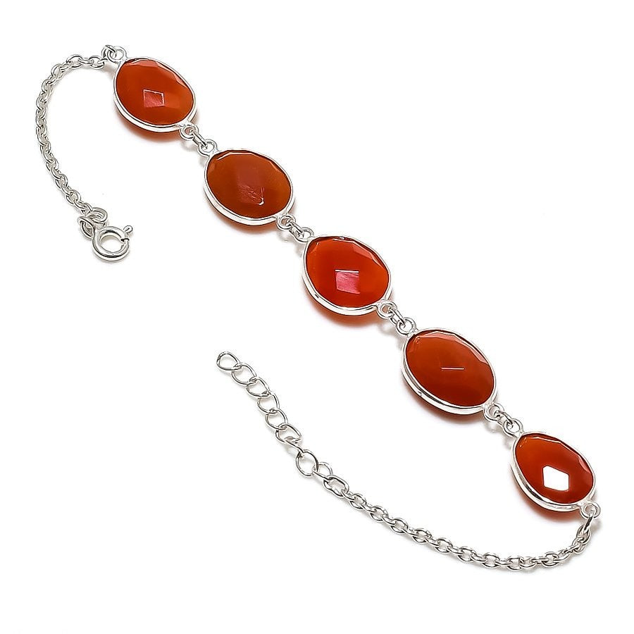 Natural Red Carnelian Solid Sterling Silver Daughters Day Chain Bracelet Jewelry