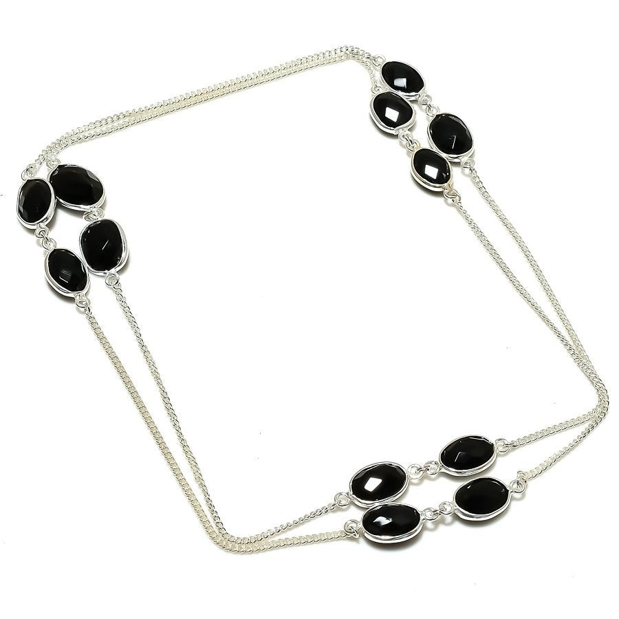 Black Spinel Gemstone Solid Sterling Silver Trendy Ethnic Chain Necklace Jewelry