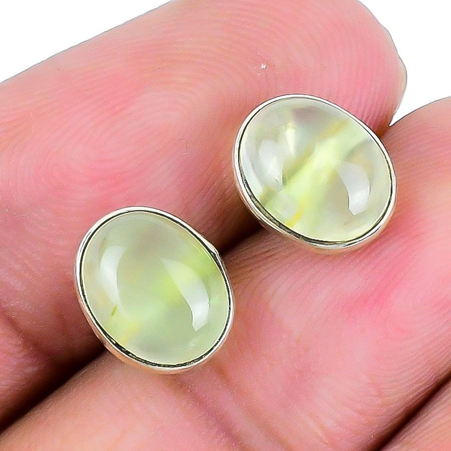Natural Prehnite Solid Silver Trendy Stud Post Daughters Day Earrings Jewelry