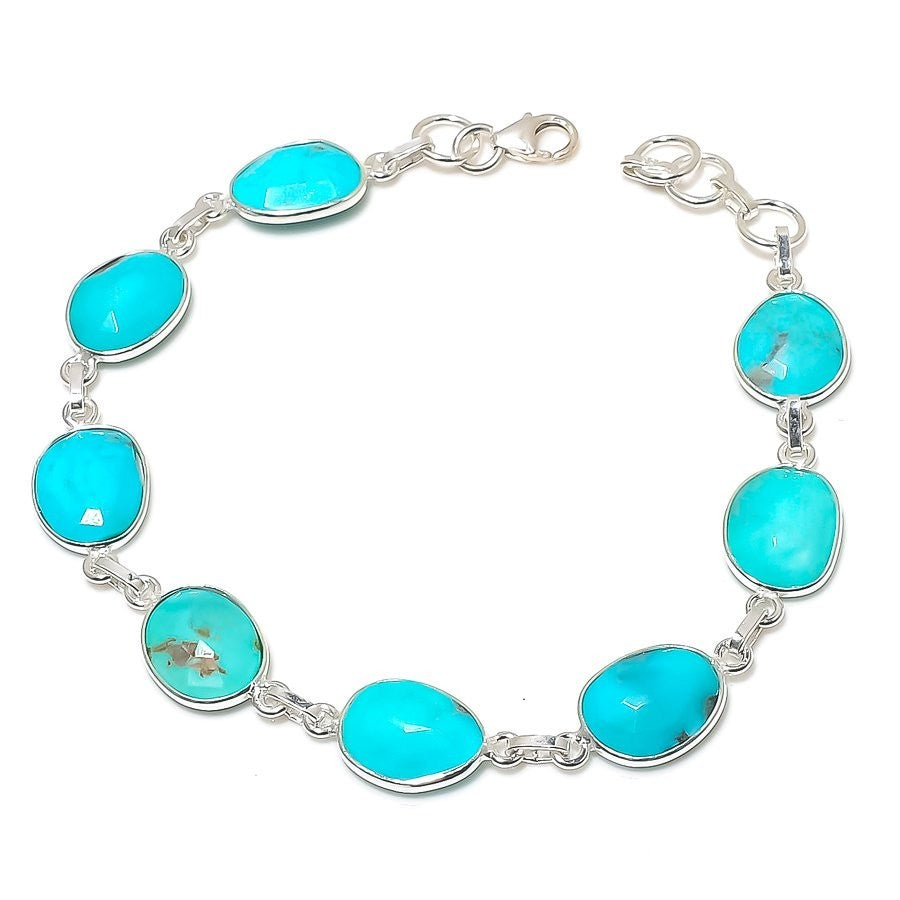 Arizona Turquoise Stone Solid Sterling Silver New Chain Artisan Trendy Bracelet