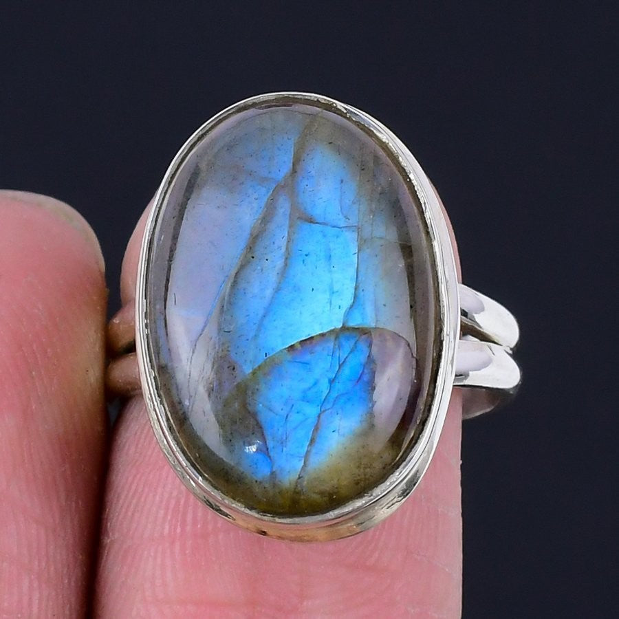 Labradorite Gemstone 925 Sterling Silver Trendy Cluster Handcrafted Ring Size 7