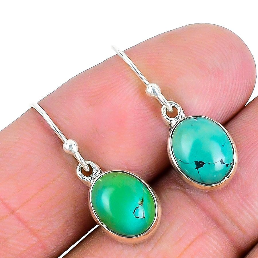 Throat Chakra Tibetan Turquoise Gemstone 925Ā SolidĀ Silver Stud Post New Earrings