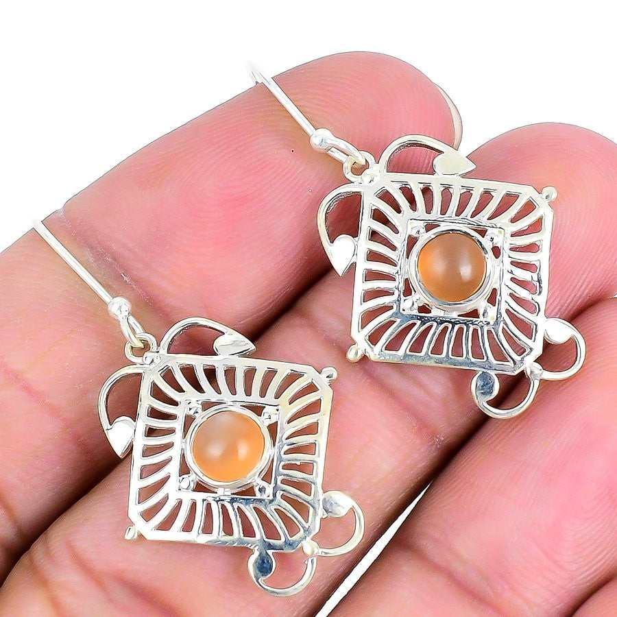 Moonstone Gemstone 925 Sterling Silver Engagement Handmade Drop Earrings Jewelry