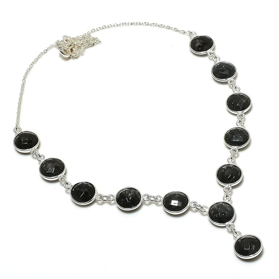 Natural Black Rutile Solid Silver Birthday Chain Art Deco Anniversary Necklace