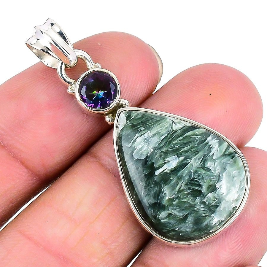 Seraphinite Gemstone Solid Silver Anniversary Daughters Day Wife Artisan Pendant