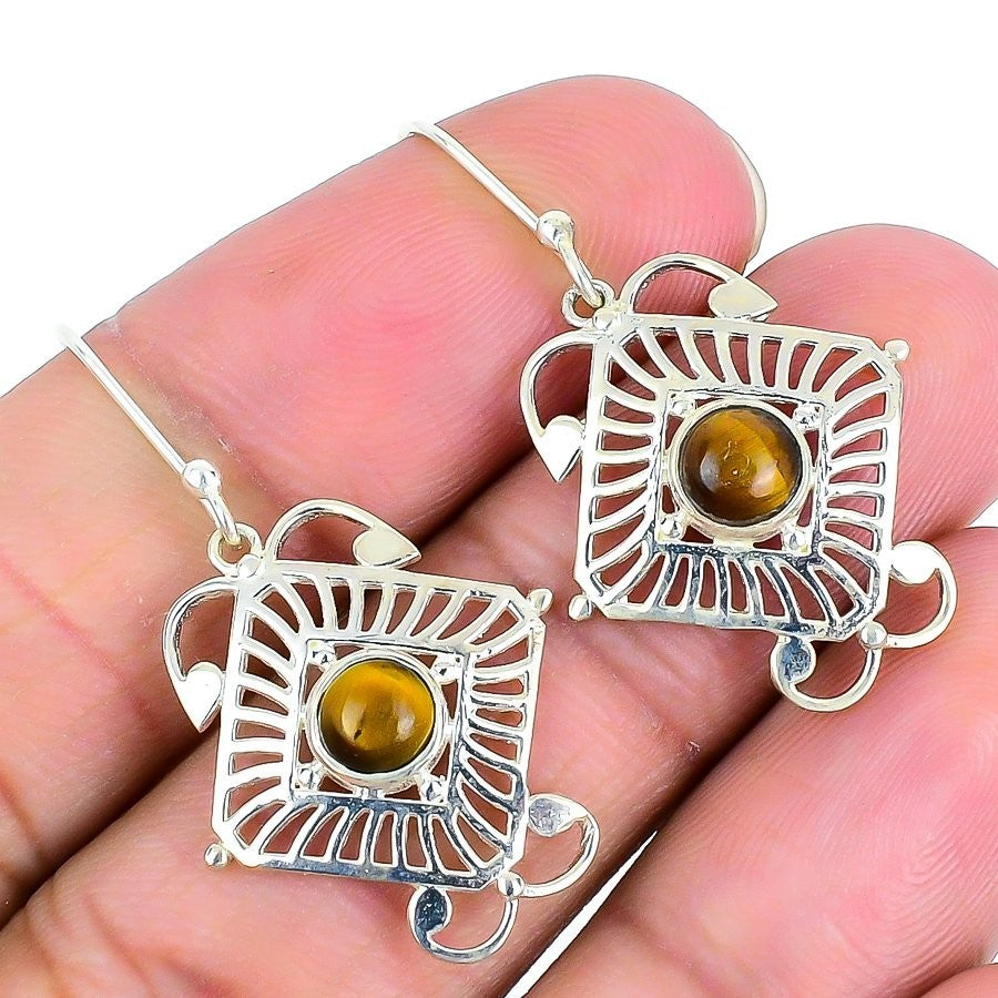 Tiger Eye Gemstone 925 Silver Dangle Handcrafted Daughters Day Earrings Jewelry