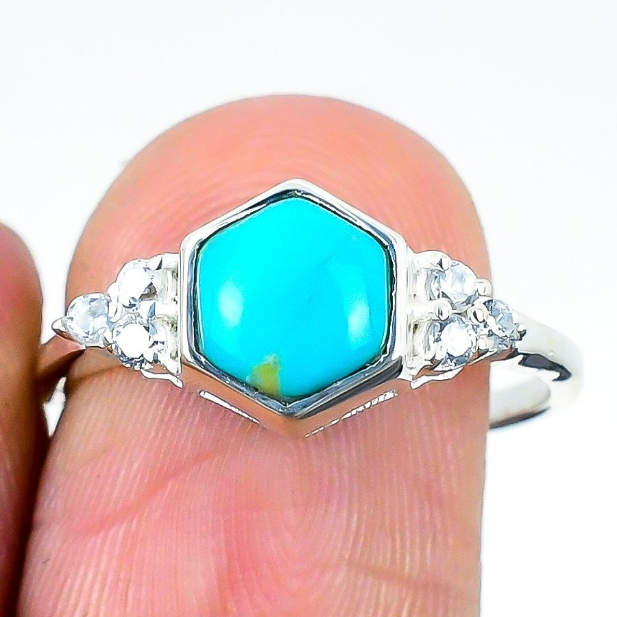 Natural Arizona Turquoise Anniversary Band Wedding Sister Ring 925 Silver US 8