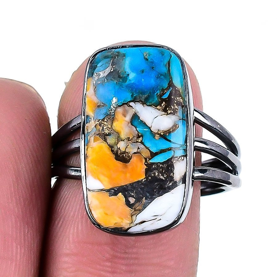 Daughters Day Deal Spiny Oyster Gemstone Mother Boho Statement Ring Solid Silver